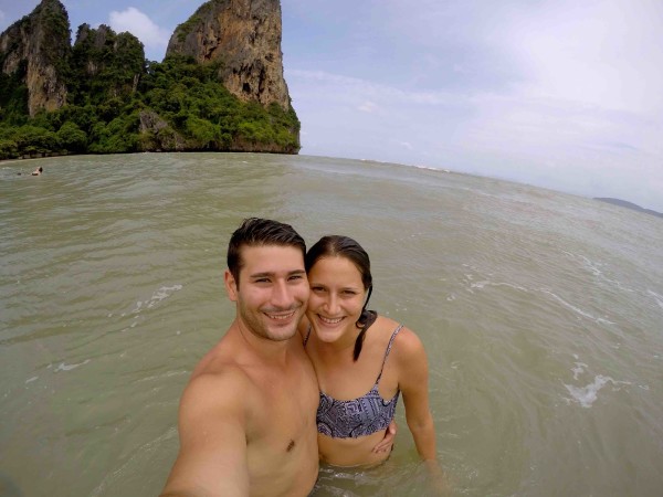 July 24, 2015 | talktraveltome | 3 Comments Krabi is a hotspot in Southern Thailand where a majority of people stay before visiting some of the 80 islands off the west coast, including the famous Phi Phi Islands. In fact, this is what we were planning to do until we realized that we were visiting western Thailand right in the middle of their rainy season. As they say, even the best-laid plans of travelers often go astray… or something like that. We checked the weather once we arrived in Krabi and noticed it was going to rain for nearly the next two weeks straight. Needless to say, we changed our plans. However, we still were able to spend three days in Krabi and made the most of our time there. Luckily for us, we were staying at the Amari Vogue, which is an incredible hotel located right on Tubkaek Beach. You might recognize the beach from the wedding scene in The Hangover II. We were happy to be staying at this great hotel before we found out about the rain, but with the less than stellar weather, the Amari Vogue was a saving grace for more than one reason. First of all, they have a beautiful, picturesque property with awesome pools and, as we already mentioned, it’s located on one of the nicest beaches in Krabi. For us this was great because whenever there was a break in the rain we could walk 20 feet and be sitting beach side. And don’t get us started on the epic sunsets that we saw every night from the hotel. On our first night, the clouds parted just long enough for us to watch one of the best sunsets we’ve seen so far. Seriously, look at this… it looks like the sky is on fire! Second, they have two great restaurants right on their property grounds, Bellini and Lotus, which made for a quick commute to grab a tasty meal. As you may have been able to guess from the name, Bellini is an Italian restaurant and it’s located right on the beach. Being from Northern New Jersey, we have a pretty good sense of what constitutes good Italian food and Bellini past the test with flying colors. We tried one of their brick oven pizza’s and a seafood pasta dish… eating good Italian food always makes us feel like we’re at home. The second restaurant, Lotus, features authentic Thai cuisine and is another great option for lunch and/or dinner. Of course, we sampled the fare and were not disappointed. We tried a few different curries over the course of our stay, all of which were delicious and worth trying. The hotel property has a total of 57-rooms, all of which are designed in classic Lanna style, so you get a feel of Northern Thailand while relaxing on the beach. We stayed in the Deluxe room and slept in one of the biggest beds ever. Last, but not least, the staff is incredible. Both managers, Wayne and Ian, are very personable and were extremely accommodating. We were planning on just staying in the hotel since the Weather.com forecast was calling for rain all day, but the manager, who has become an expert in predicting Krabi weather, told us that it was going to be a fairly clear day and we should see some of the local sites. As Wayne had predicted, the rain stopped, and that beautiful bright Thailand sun shined through! The ocean was still a little too rough to make the journey by longboat to Hong Island, so we opted to take a day trip to the Railay Peninsula. Railay is only accessible by boat due to the steep limestone cliffs cutting off access from the mainland, so you can either catch a boat from Krabi Town, Ao Na Moa or Ao Nang. The ride from Ao Nang costs 100 Bhat per person and takes about 15 minutes compared to 45 minutes if you leave from Krabi Town. Taking a long-boat journey is a must-do while visiting Thailand and the one to Railay offers incredible views of the southern coast! Once we departed the long-boat, it was time to start exploring! One thing that makes Railay so great is that there are no cars on this part of Thailand… so you best get steppin’ to see all that Railay has to offer! Most people that visit Railay are there to soak up the sun on some beautiful beaches or get real adventurous and take part in some world class rock climbing. Since we can barely climb a tree let alone dangle from a very steep cliff, we made our way to the beaches. There are three beach areas on Railay: Railay West, Railay East, and Pranang. Railay West and Pranang were our favorites and the ones we would recommend checking out first. How picture perfect is this place! The sun was out all day, so we spent the majority of our time laying out and taking in the beauty that surrounded us. Railay West Once we had enough time on Railay West we made our way to Pranang Beach, which can be a bit of an obstacle course as there are a ton of monkey’s lining the pathway. After posing with the monkey’s, we got to Pranang, which is a bit smaller than Railay West, but equally as impressive. Pranang Beach Oh and don’t forget to check out the, as we like to call it, “Ode to Penis Shrine” or as the locals call it, The Sacred Penis Cave. What could be better than swimming in crystal clear water surround by limestone cliffs with phallic carvings lurking in the background! Oh Thailand, you have a great sense of humor! Overall, we’d highly suggest taking a long boat trip over to Railay! The beaches are incredible, and it’s a nice break from all the Tuk-Tuks and traffic. Once we got back from Railay the sun was still out, so we decided to do a little exploring in the nearby Tab Kak Hang Nak Hill Nature Trail. Most people who visit Krabi come for the beautiful beaches, so we were surprised to have the opportunity to explore one of Thailand’s national parks. The nature trail is 3.7km, trekking through the tropical rainforest. Along the way you can take a dip in some pools, just be sure to bring some water, because it is hot and humid! Some of the other attractions we didn’t get a chance to experience for ourselves due to the weather, but would highly recommend checking out while in Krabi, in
